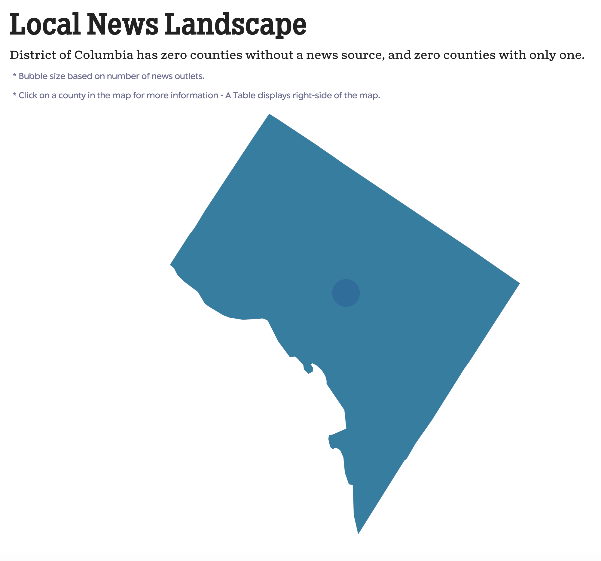 For example, if you look at the information for Washington, D.C., the system tells you, “District of Columbia has zero counties without a news source, and zero counties with only one.” What?